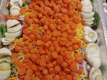 Steamed Carrots, Peppers, Onions, Boiled Eggs, and Cheese